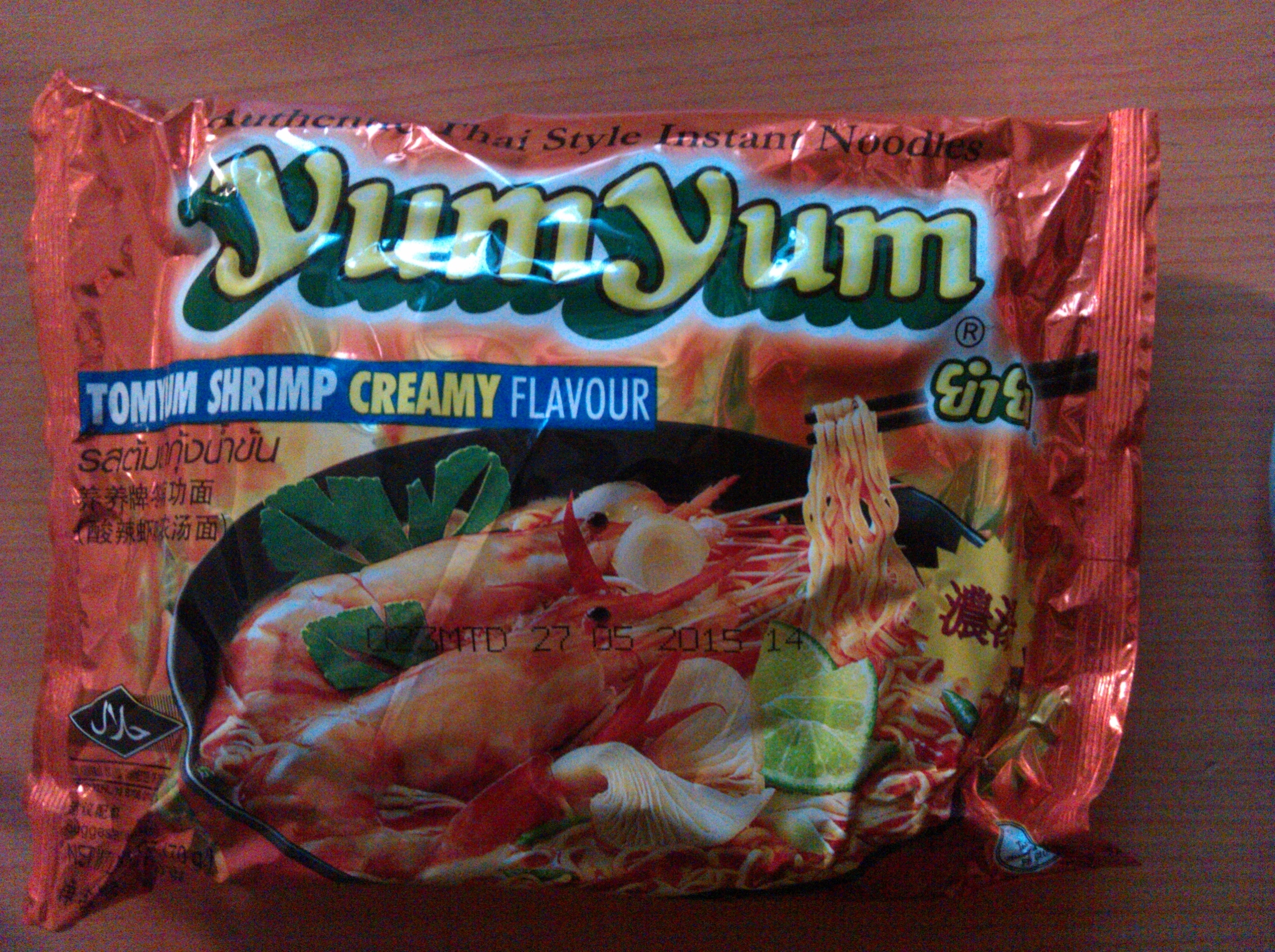 Já jsem sice nevědel, co se na tom obalu píše (česky je pouze příprava a složení na nalepovacím lístečku), ale už když jsem políval směs nudlí, kořenícího prášku, sušené zeleniny a nemálo ochuceného tuku, do místnosti začala pronikat vůně masového vývaru. Byl to ten tuk, jeho barva leccos napovídala, ovšem takto intenzivní čichový požitek již při přípravě, to ve mně vzbudilo zájem. Čtyři minuty čekání na zkřehnutí nudlí se zdály být věčné. Po oné věčnosti jsem klepajícími prsty s okousanými nehty sundal pokrývku misky.